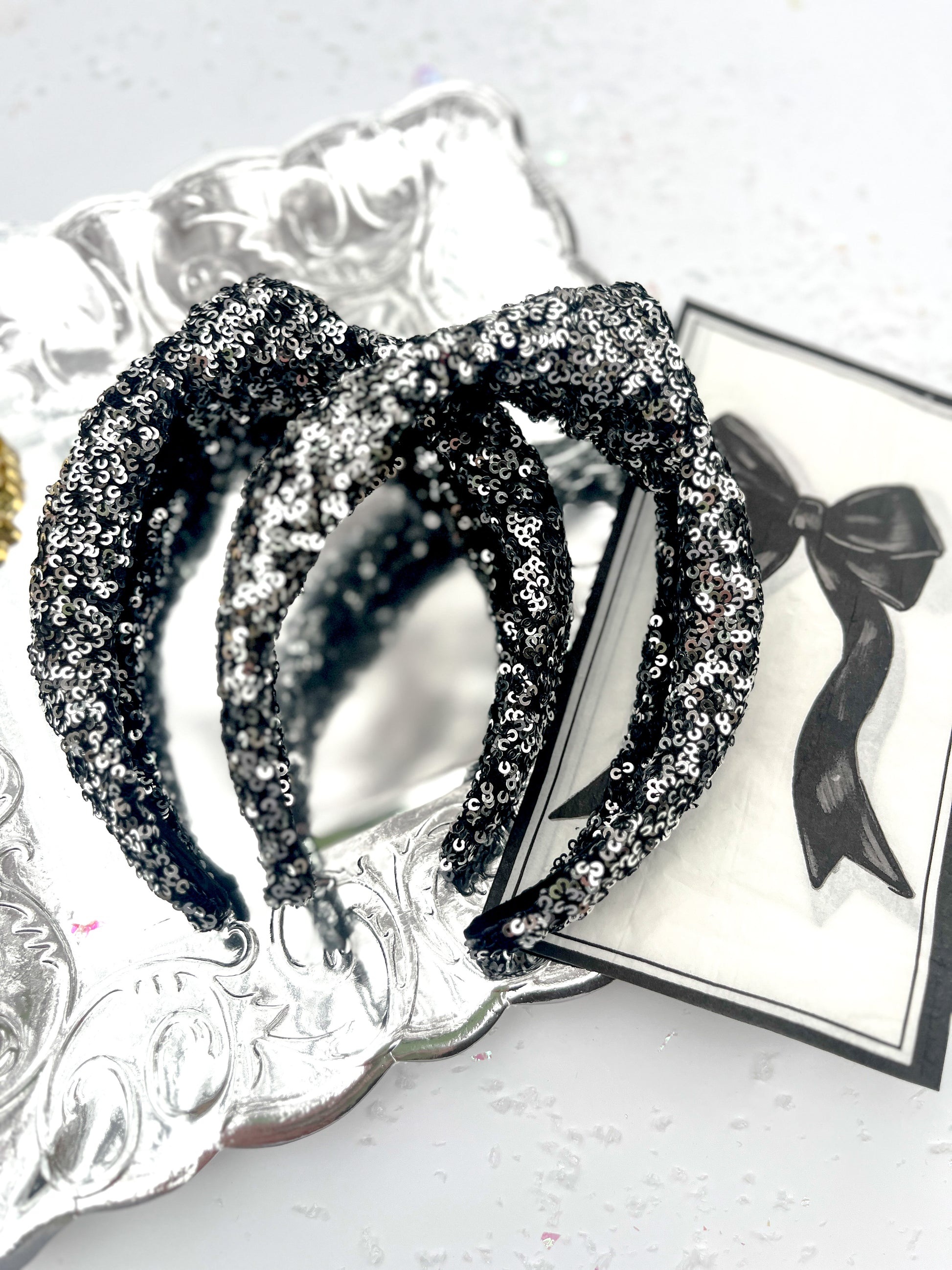 Black & Silver Sequin Knotted Headband for Girls & Women