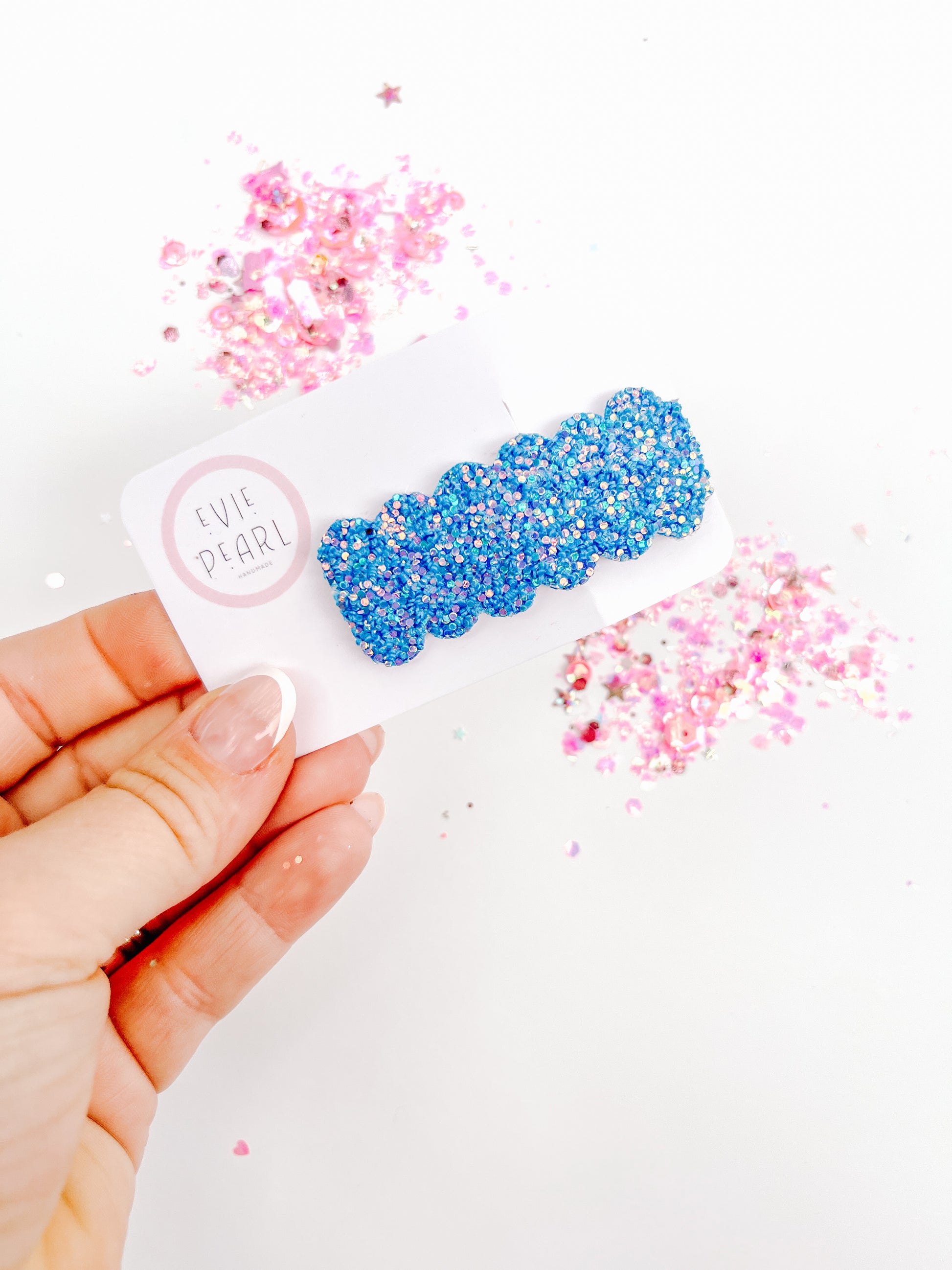 Add a pop of glitter to every day with our handmade Glitter Snap Clips — the cutest way to keep hair out of your face while adding a touch of shine! Each clip is hand-cut and crafted with love at Evie Pearl Handmade, designed to grip securely and stay put all day long.