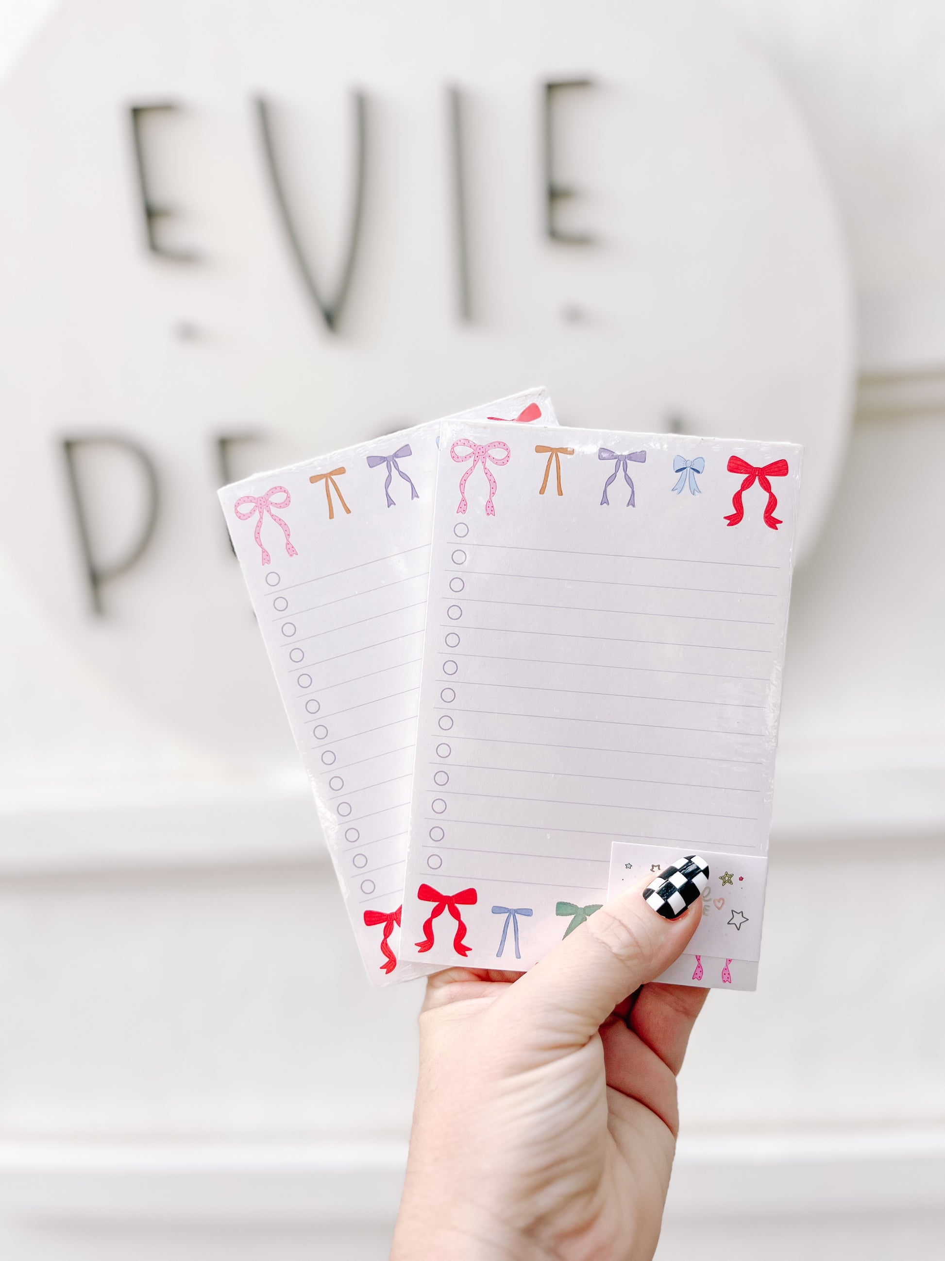 Stay stylishly organized with the Coquette Bows Notepad! This charming notepad features hand-drawn bows in a delicate pastel palette, adding a touch of elegance to your everyday tasks. Perfect for jotting down to-do lists, grocery runs, study notes, or planning your week with ease. Its whimsical design makes it a must-have for stationery lovers and a thoughtful gift for friends, coworkers, teachers, or anyone who appreciates cute and functional desk accessories. Whether you're tackling errands or penning sweet reminders, this notepad is as practical as it is pretty!