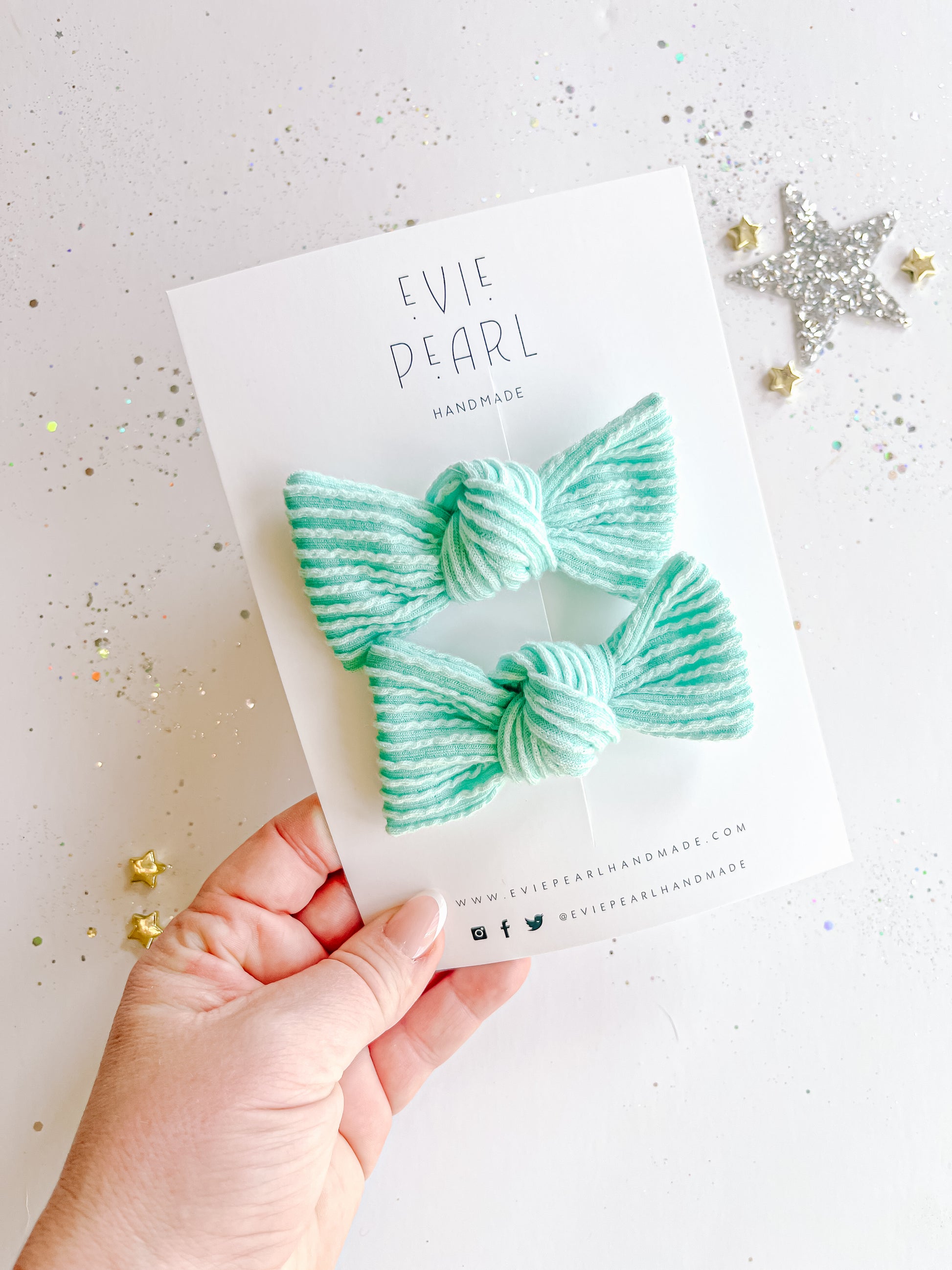 Elevate your little one's pigtail game with our **ribbed knotted pigtail bow set!** This set includes **two beautifully textured ribbed bows**, each tied in a classic knot and attached to a **large alligator clip** for a secure and comfortable hold. Designed for effortless styling, these bows are perfect for everyday wear, special occasions, and everything in between.