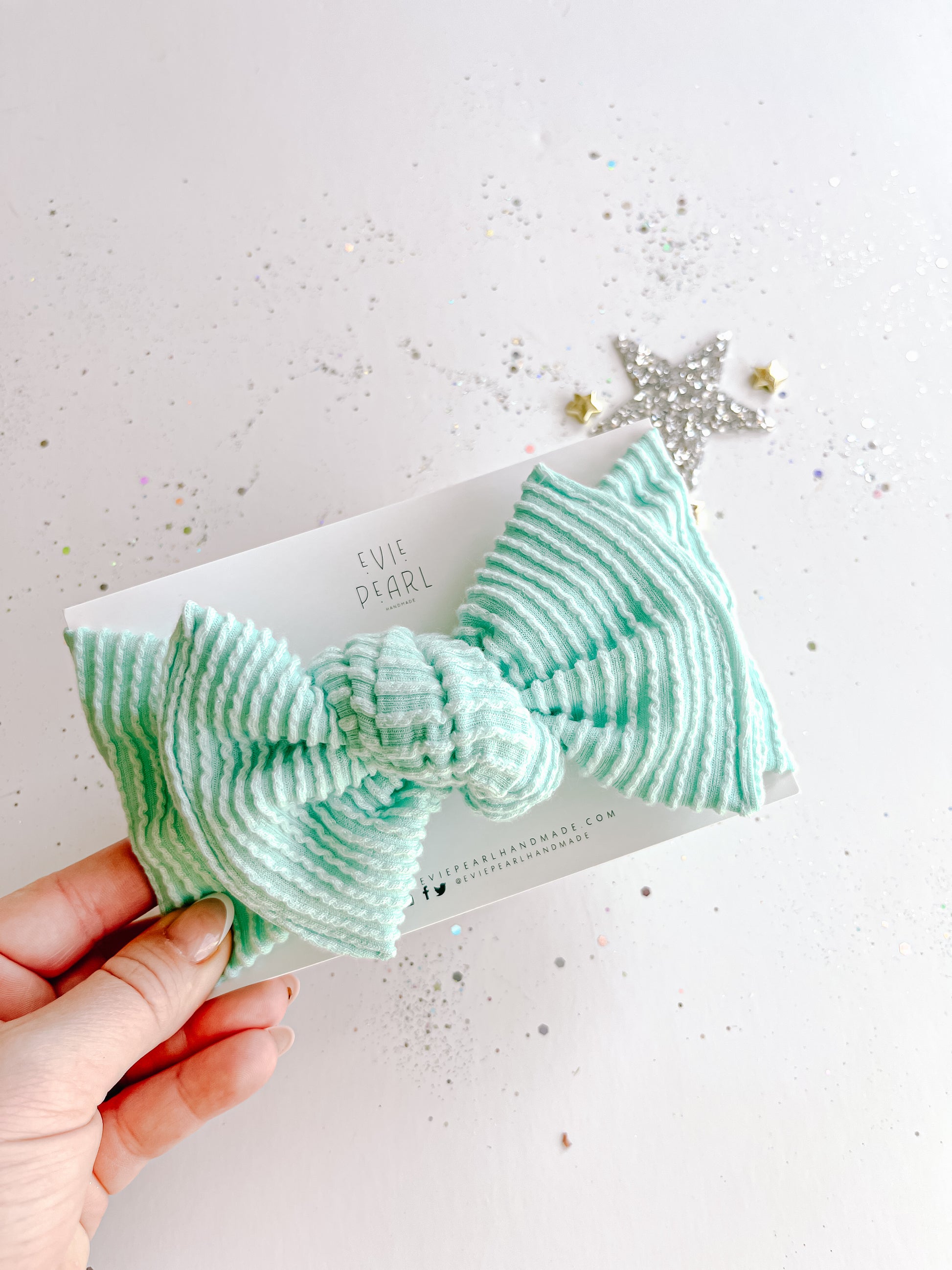 Teal Ribbed Baby Bow Turban