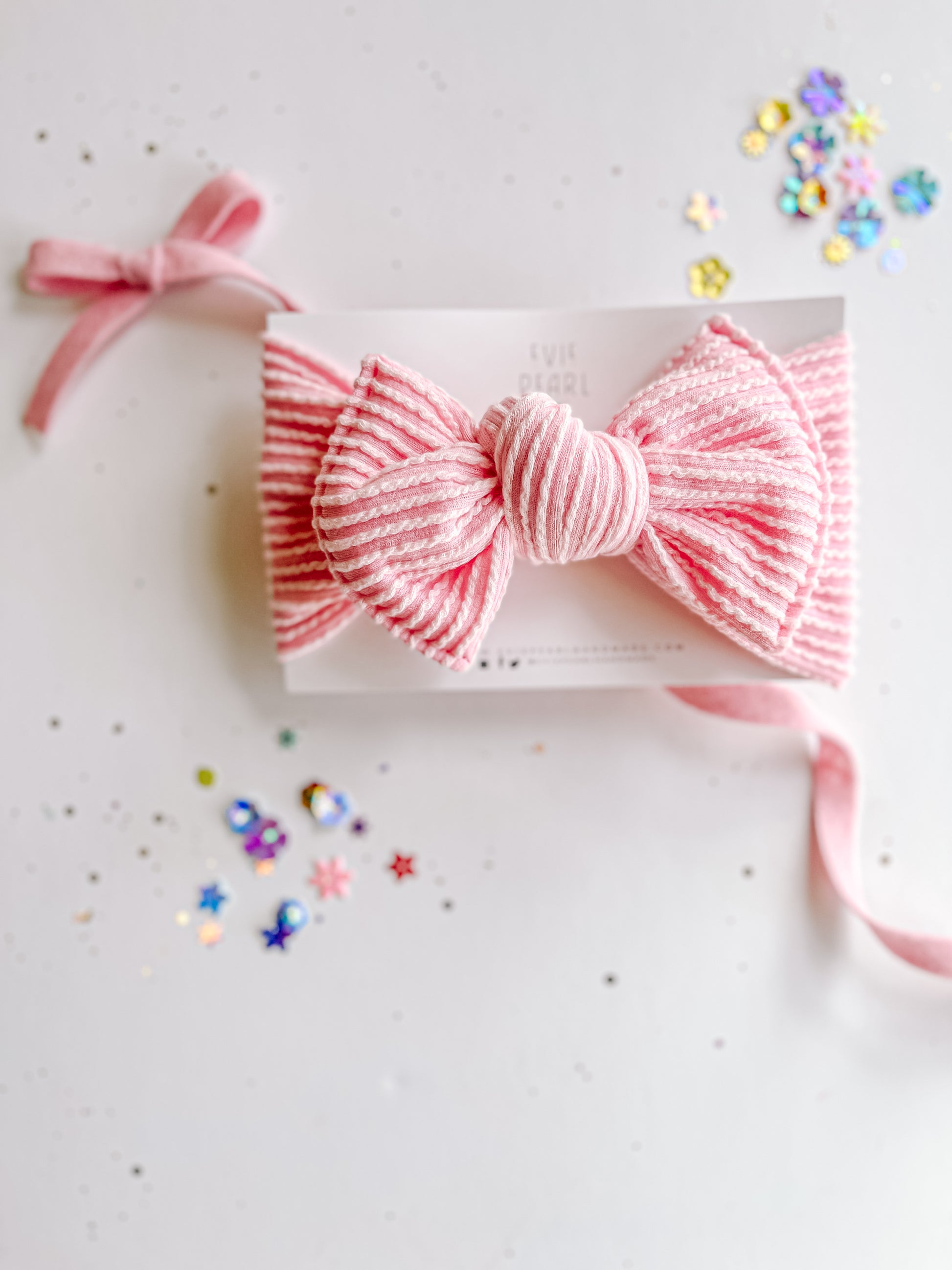 Our Soft Ribbed Baby Bow Turbans are the perfect blend of comfort and cuteness! Designed for babies and toddlers, they come in three sizes to grow with your little one. These adorable turbans feature a sweet bow detail and are made with ultra-soft ribbed fabric, keeping your baby's head cozy and stylish. Available in fresh, spring-inspired hues, they're a must-have for all your spring adventures!