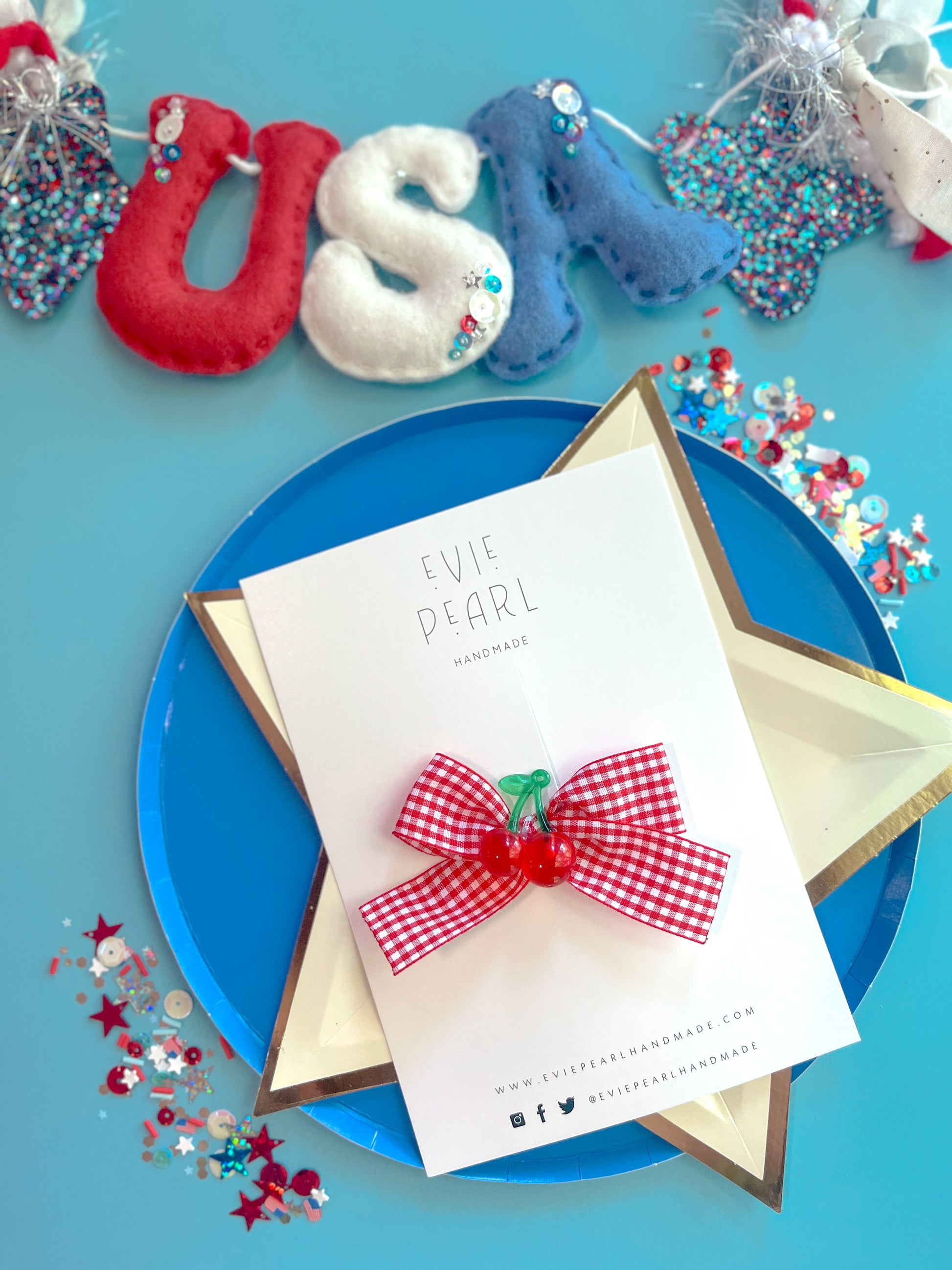 Let your little one sparkle with patriotic charm in our Fourth of July themed hair bows! Handcrafted with love and layered in red, white, and blue, these magical bows are perfect for summer adventures—whether she’s chasing bubbles, twirling in the backyard, or gazing up at fireworks.