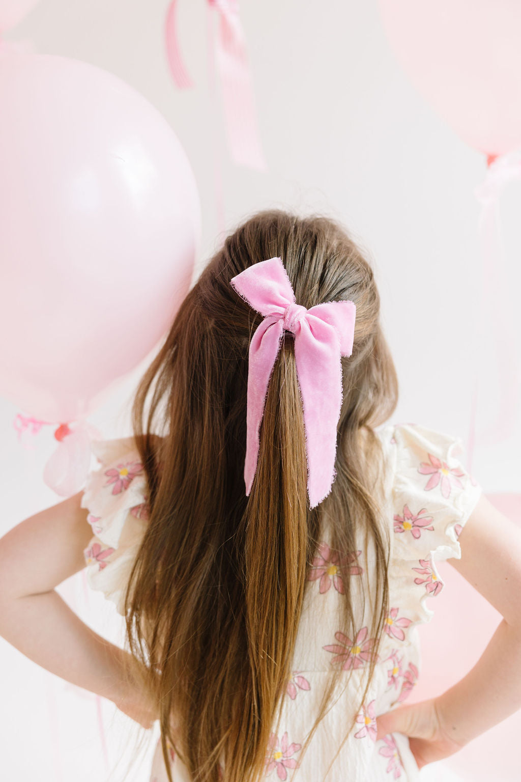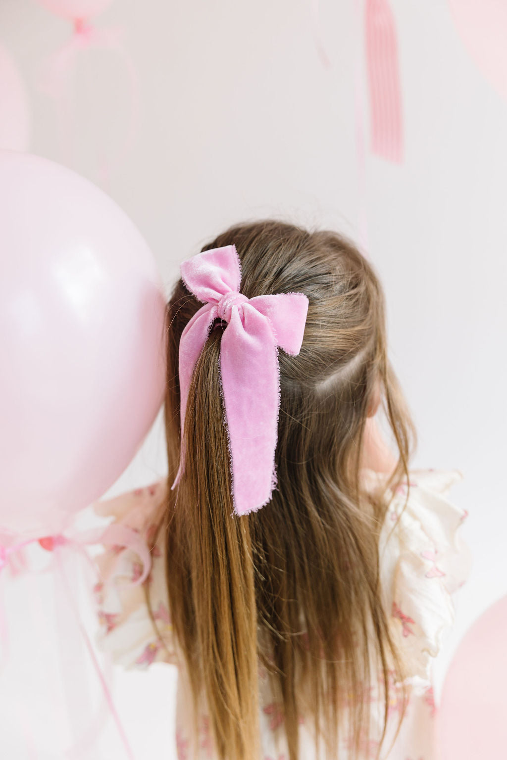 Bubblegum Pink Silk Raw Edge Long Tailed Bow
