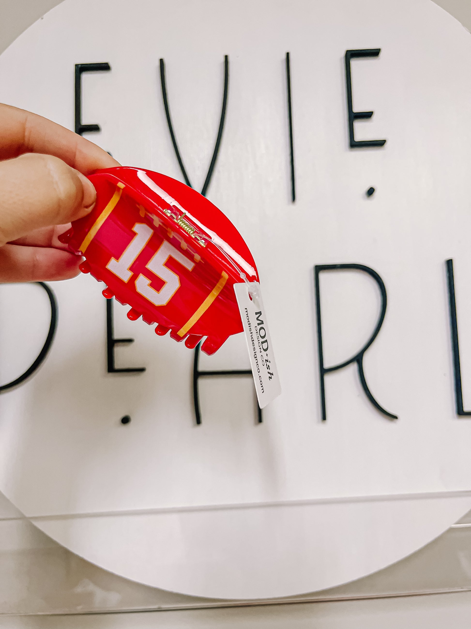 Cheer on the Chiefs while keeping your hair in place with this bold and practical claw clip!