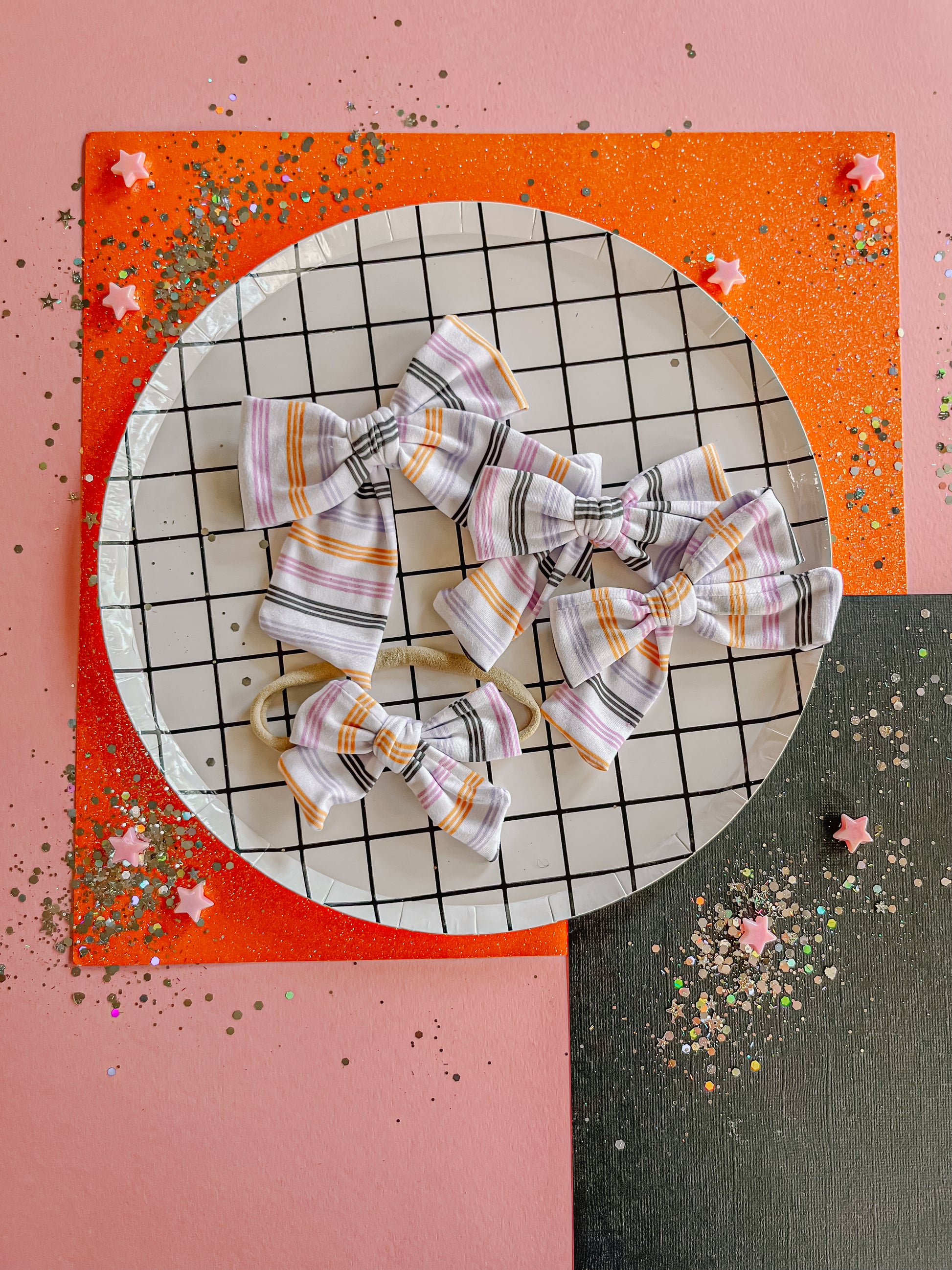 Black|Orange|Purple|Lilac Stripes Pinwheel Bow