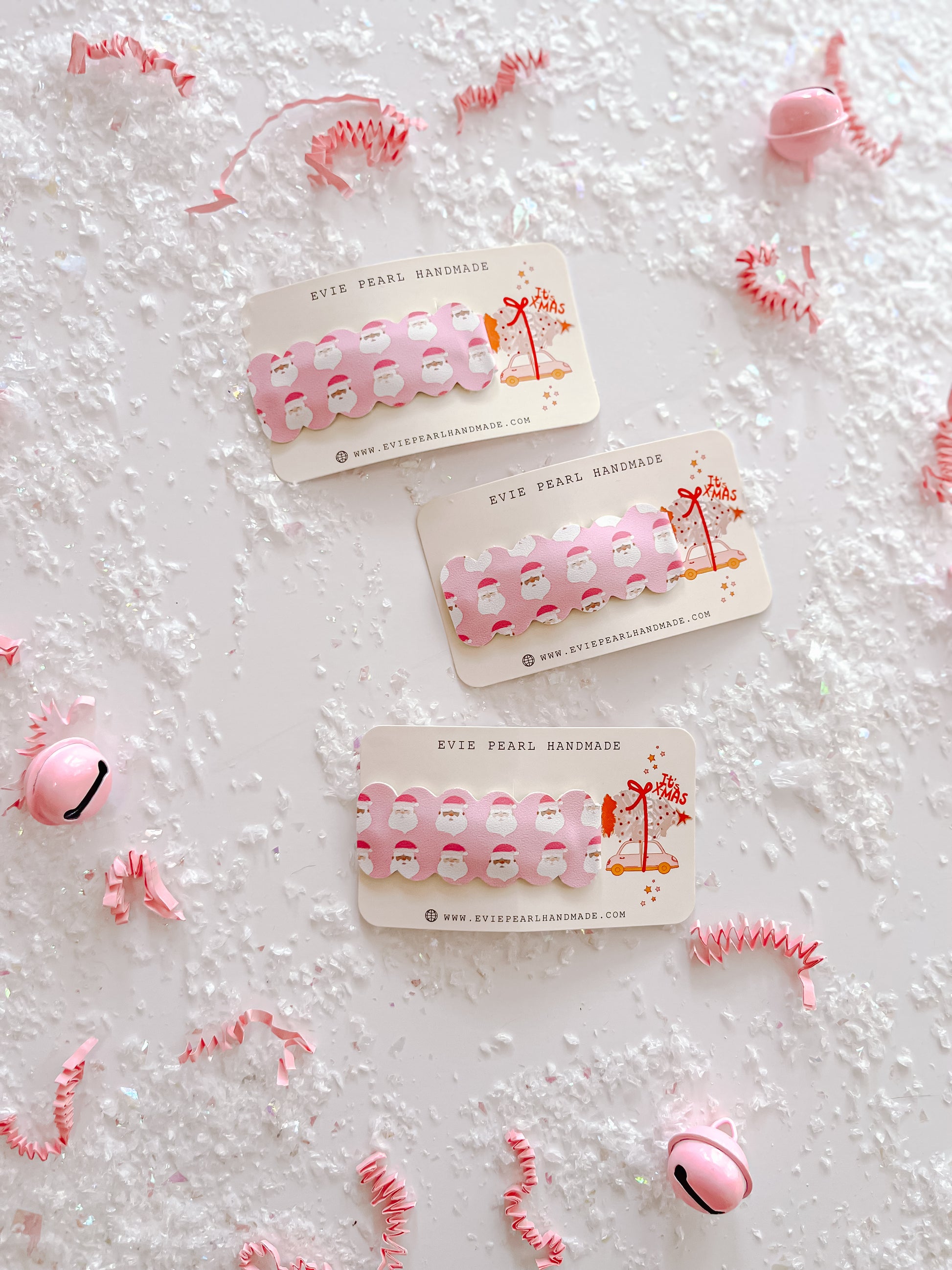 Christmas snap clips, holiday barrettes, handmade scalloped edge hair clips, girls' snap clips, festive hair accessories, Christmas hair clips, barrettes for bangs, toddler holiday hair clips, festive hair accessories for girls, Evie Pearl Handmade barrettes.