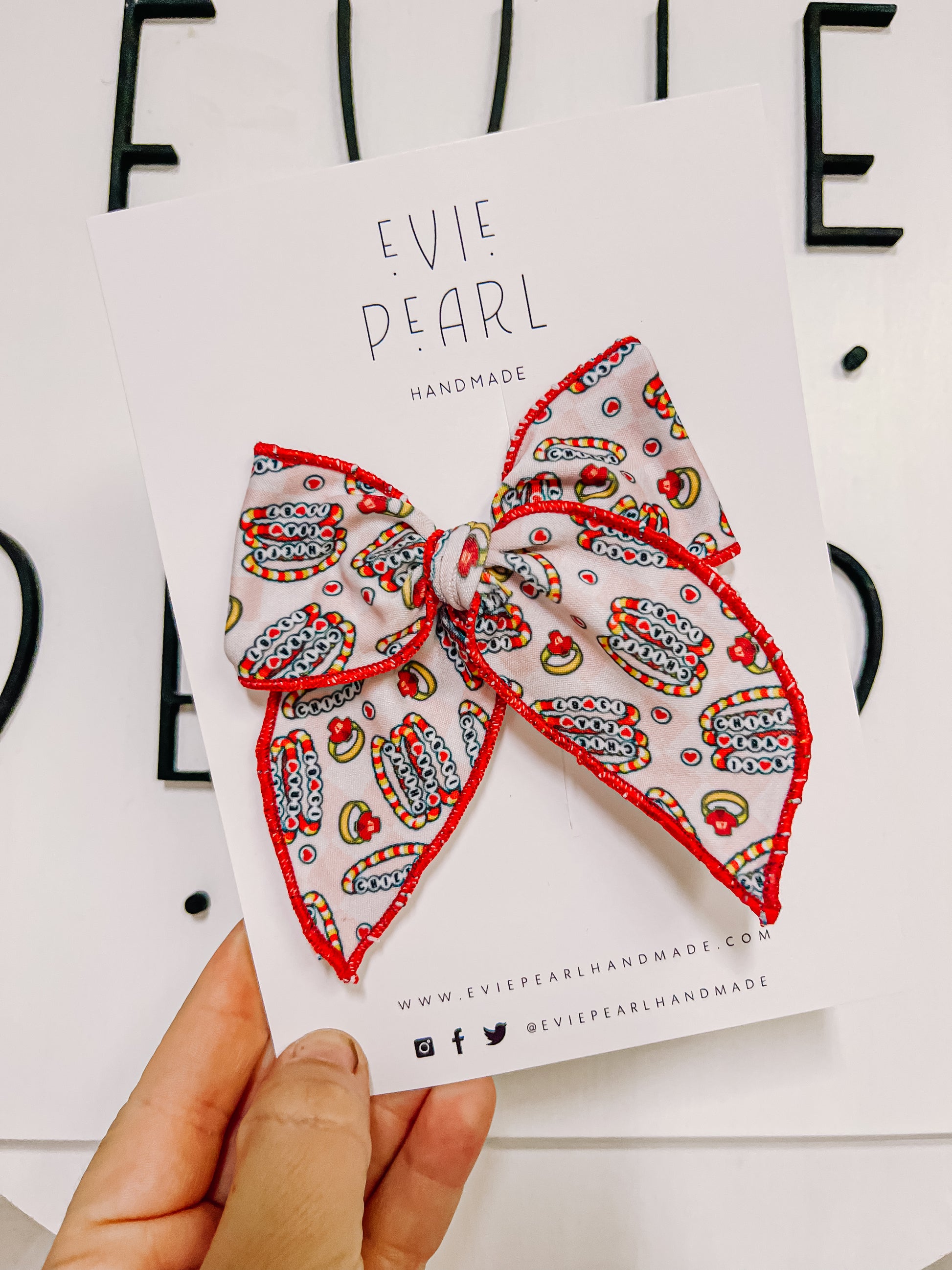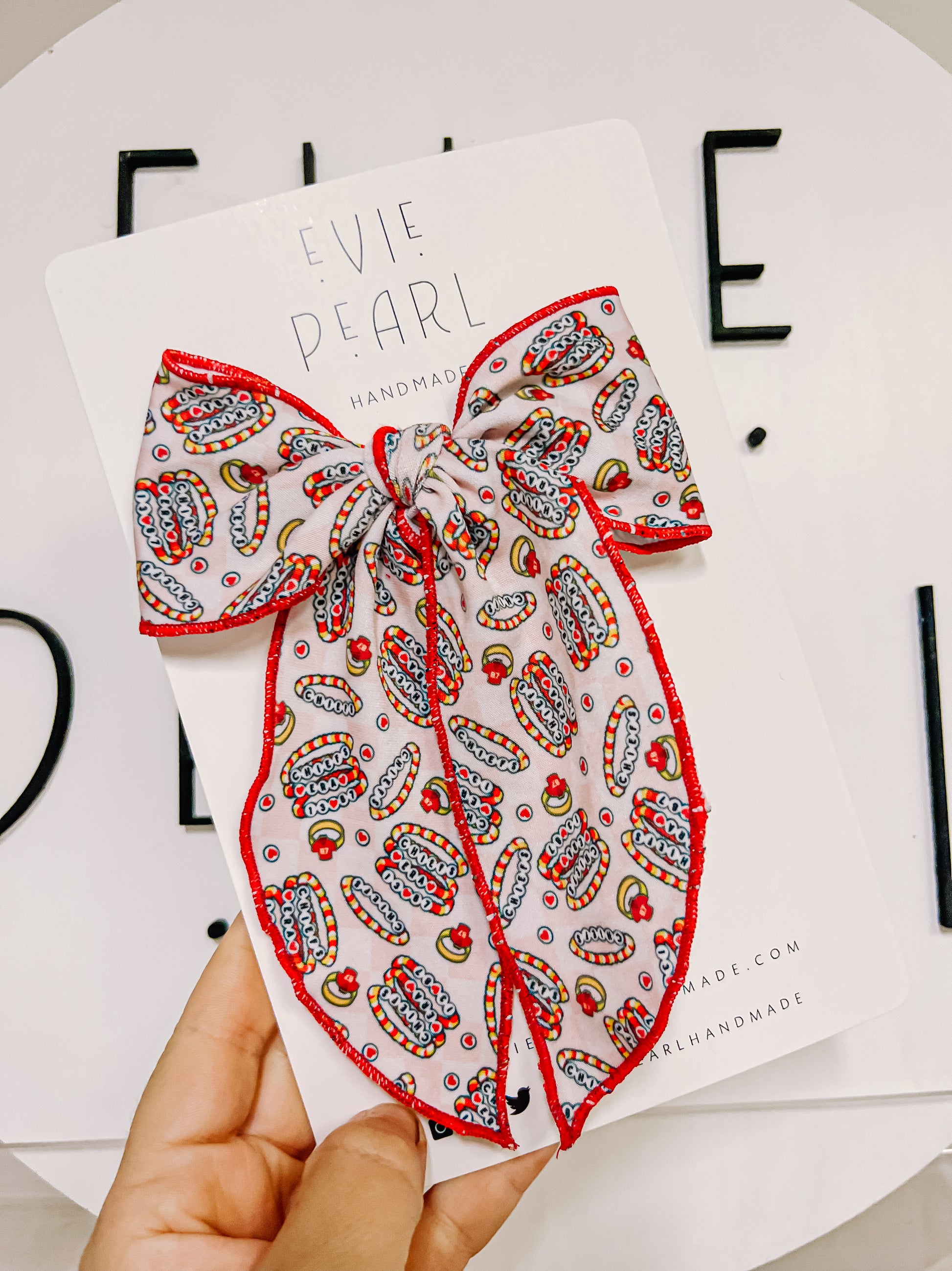 Elevate your game day look or everyday style with our Kansas City Chiefs themed handmade hair bows. Combining quality, comfort, and team pride, these bows are a must-have for any Chiefs fan. Show your support in style, whether you're at Arrowhead Stadium, a watch party, or out and about in Kansas City.
