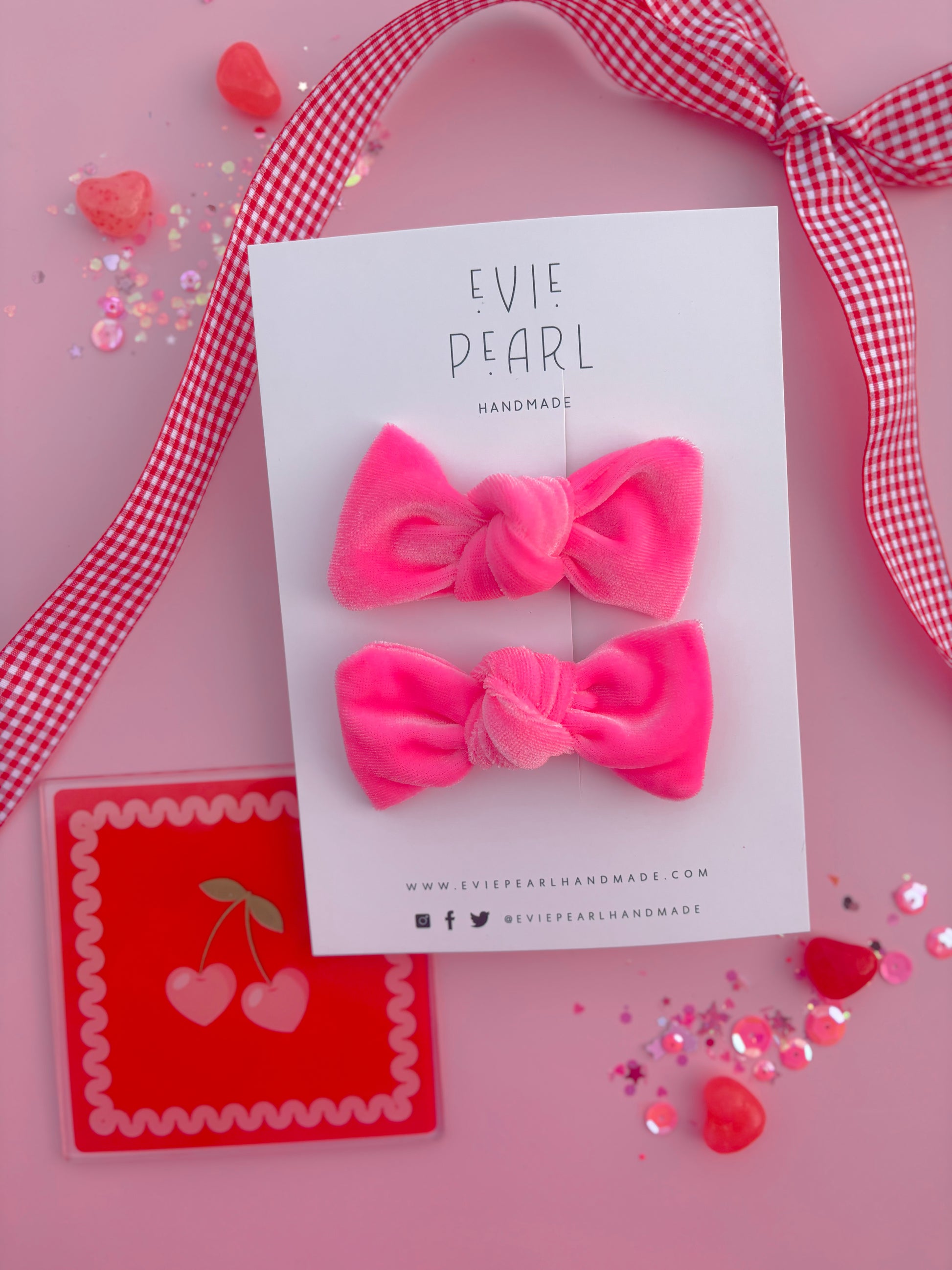 Our Valentine knot bow pigtail bow set is the perfect Love Day hair accessory, featuring one right and one left bow for easy, symmetrical styling. Each bow is attached to a large alligator clip designed to grip securely and stay in place on all hair types, from fine to thick. With sweet Valentine-inspired designs in pinks and reds, this set is perfect for school days, Valentine parties, photos, gifting, and everyday wear. A cute and comfortable pigtail bow set girls will love all season long.