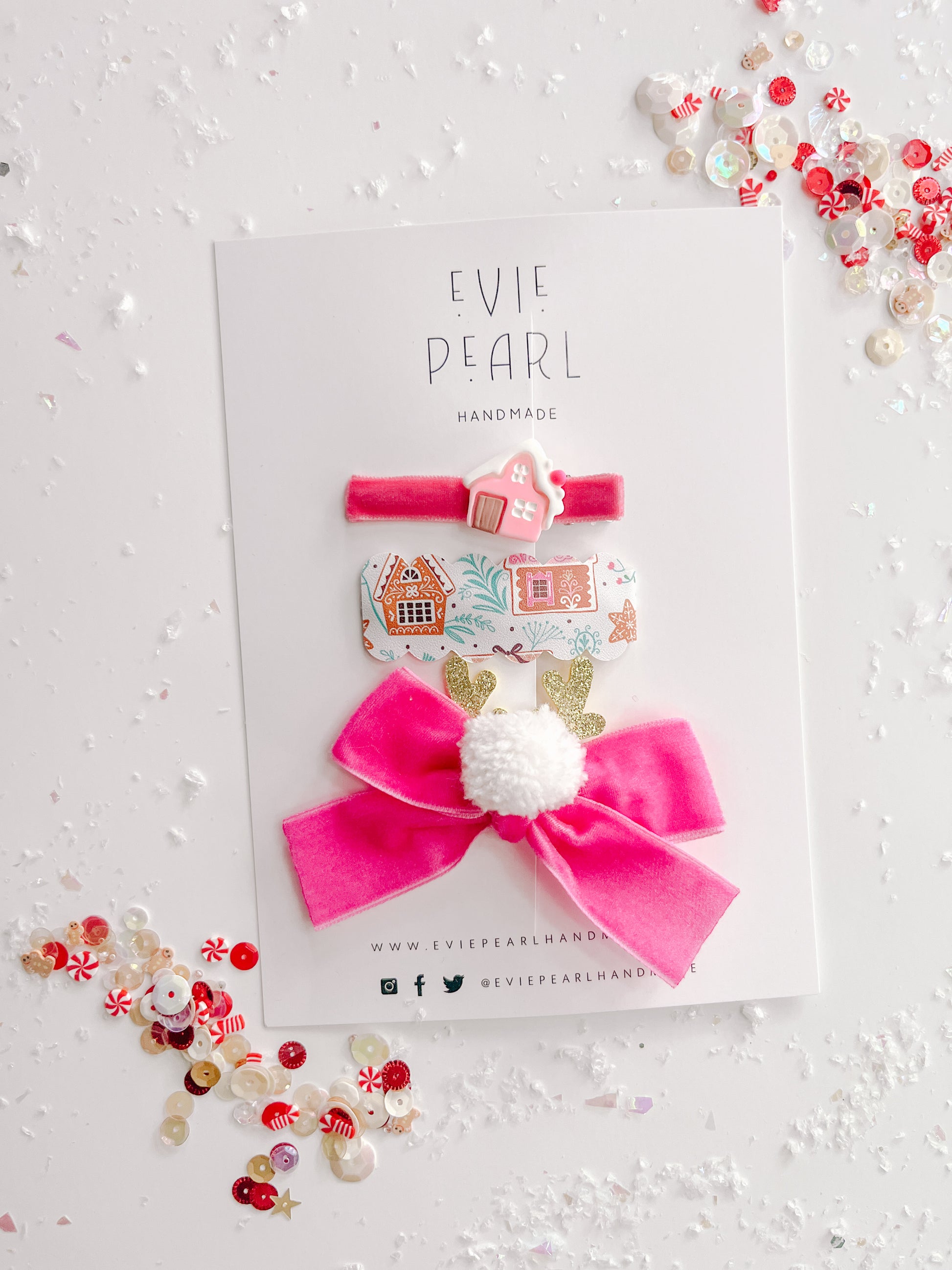 Wear each clip individually for subtle sparkle, pair them for matching pigtails, or stack all three to create the cutest holiday hairstyle full of pink and gingerbread magic!