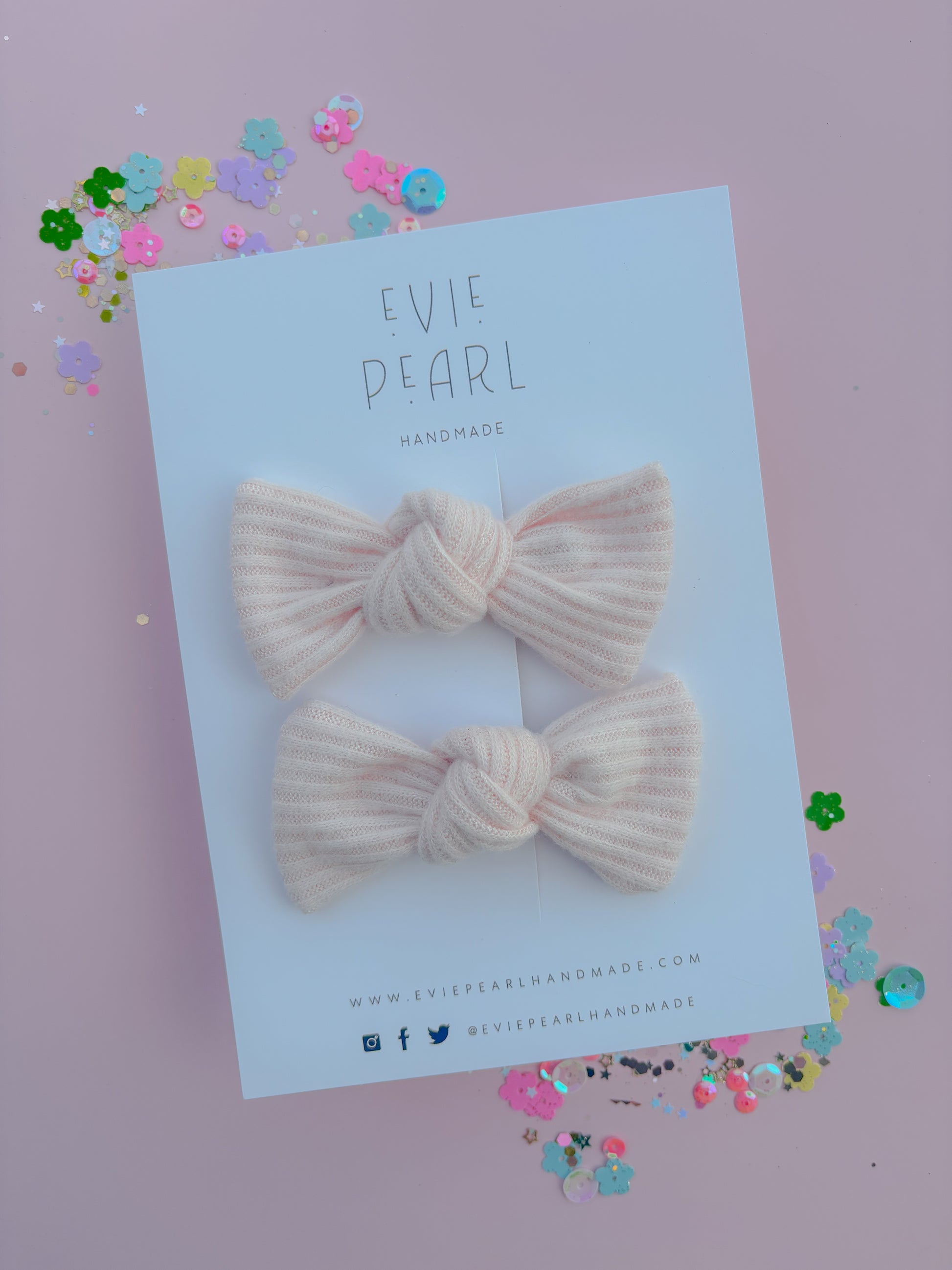 Light Pink Soft Ribbed Knot Bow Pigtail Set