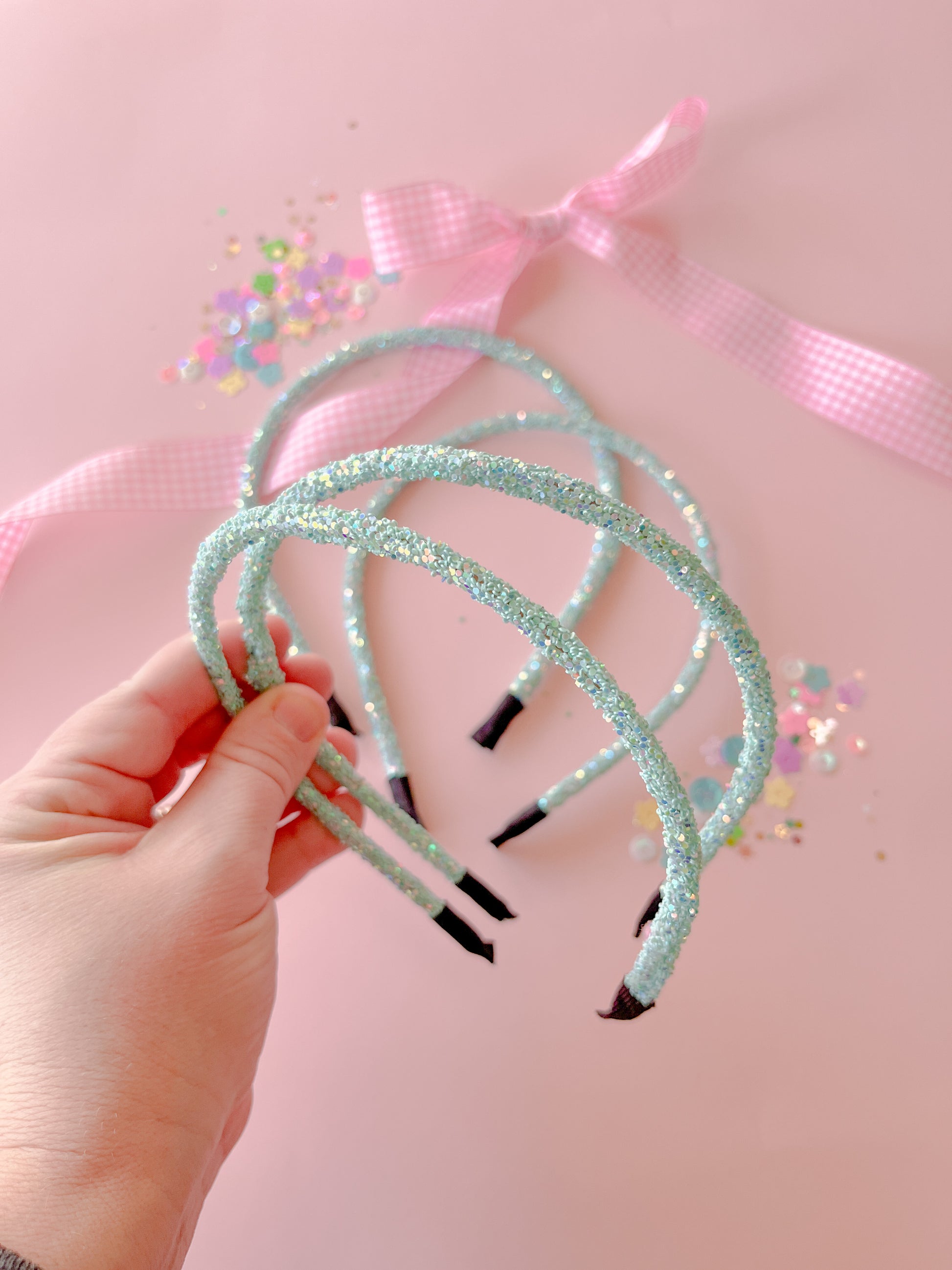 • Thin green glitter headband