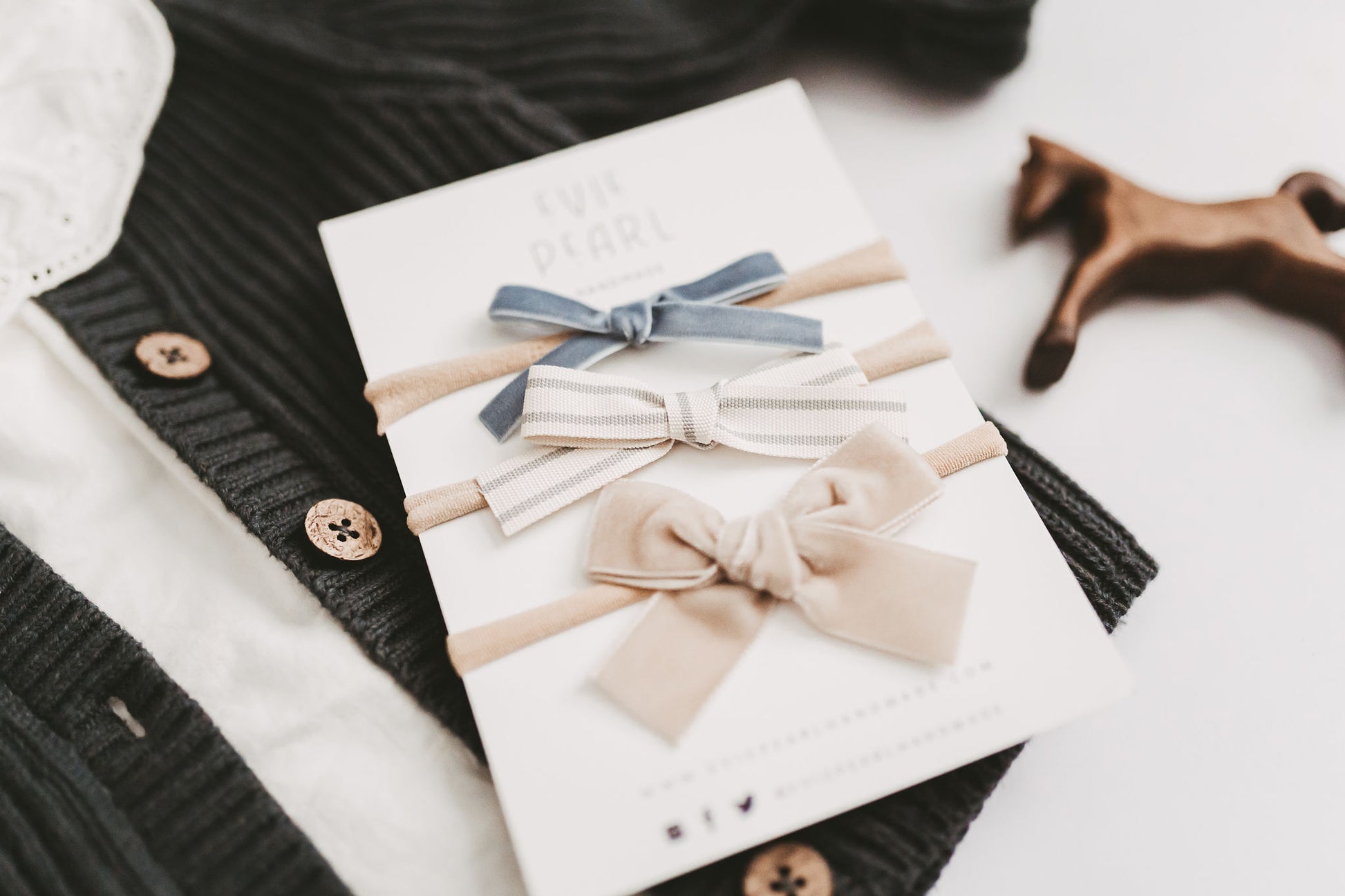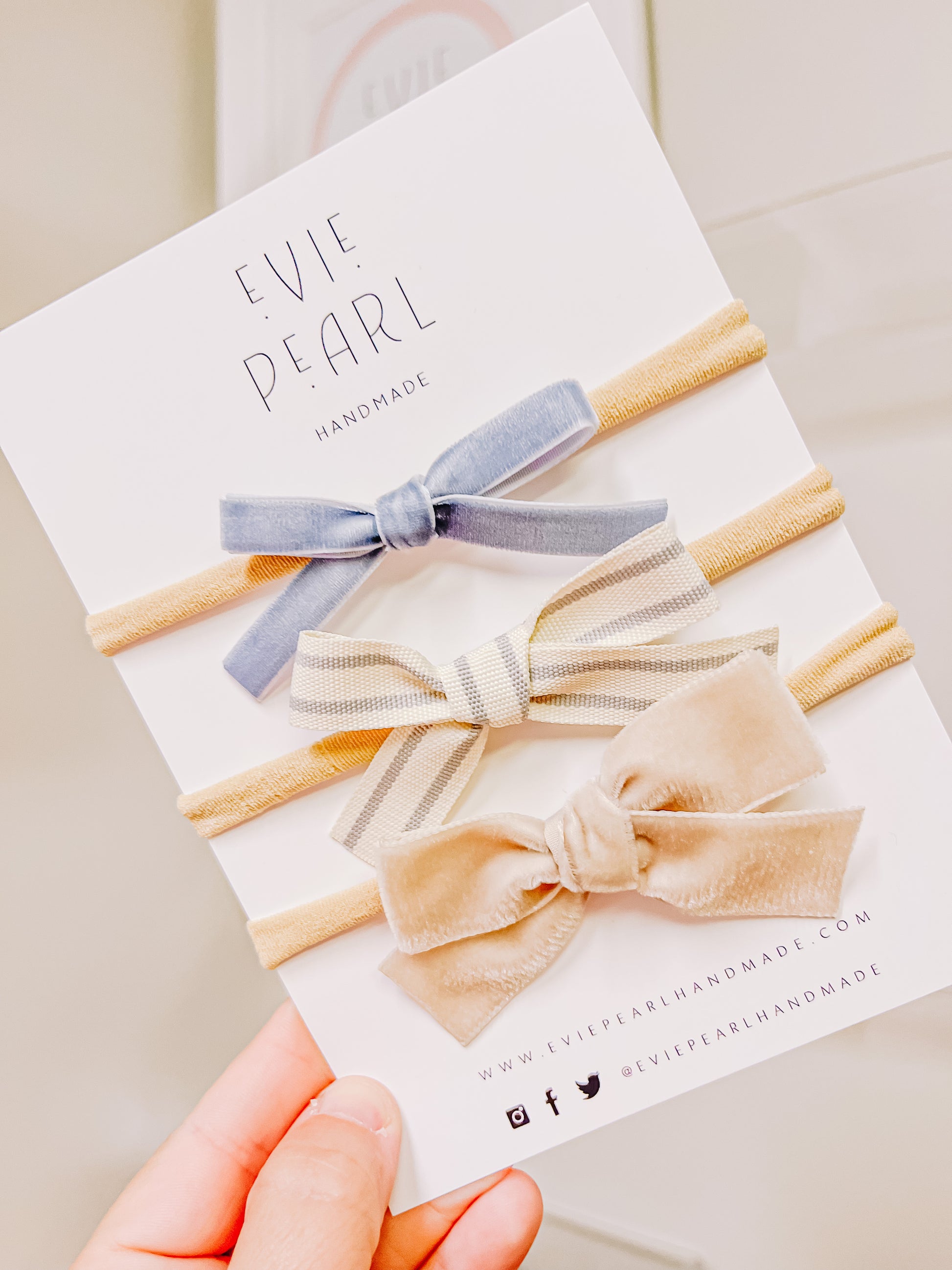 This listing is for 3 bows. It will come on a nylon headband. Our nylon headbands fit newborns, babies, toddlers and even girls. These headbands stretch nicely and do not leave a mark on head.
