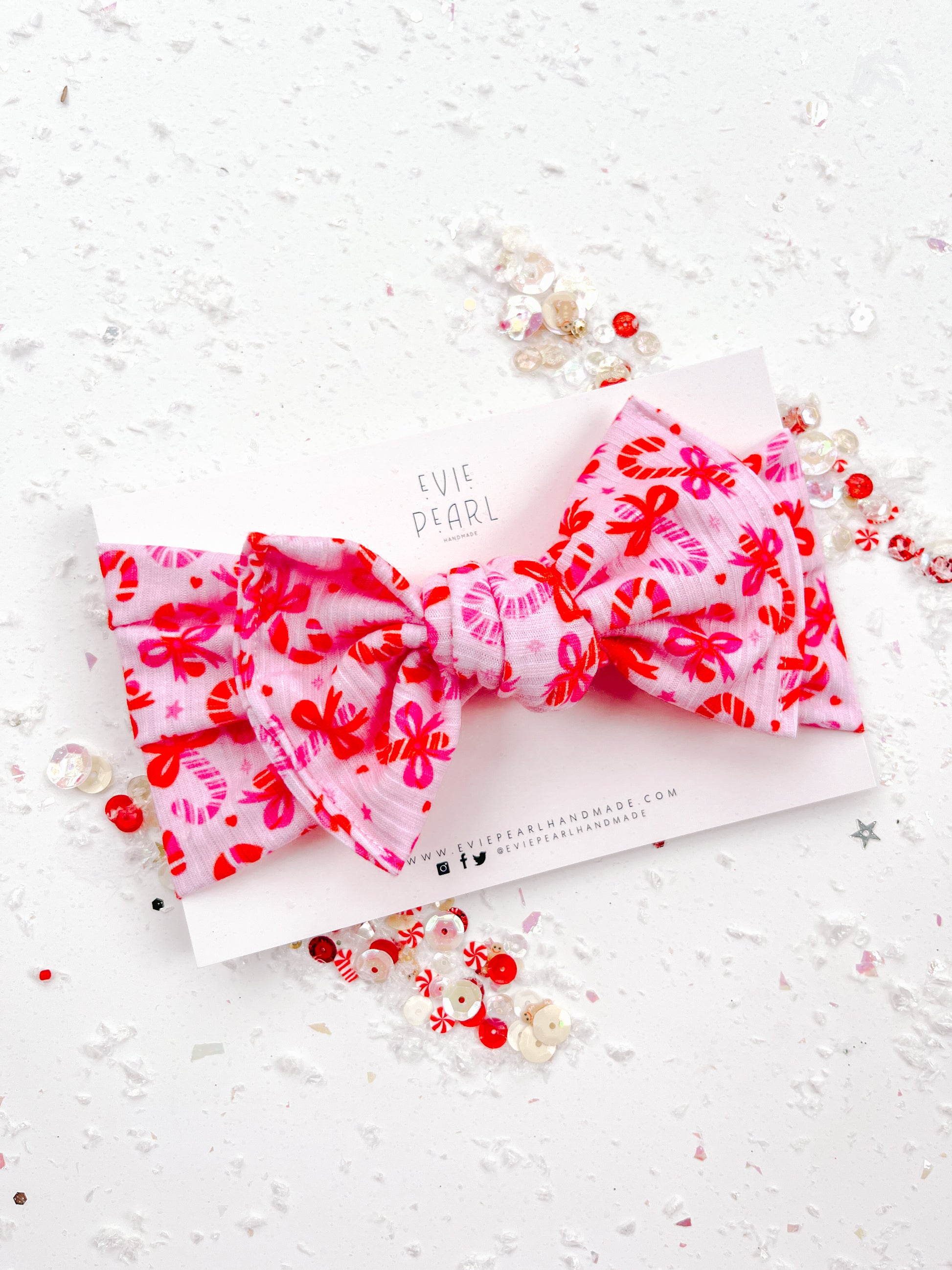 Red Pink Candy Cane Bow Turban for Baby & Toddler Girls