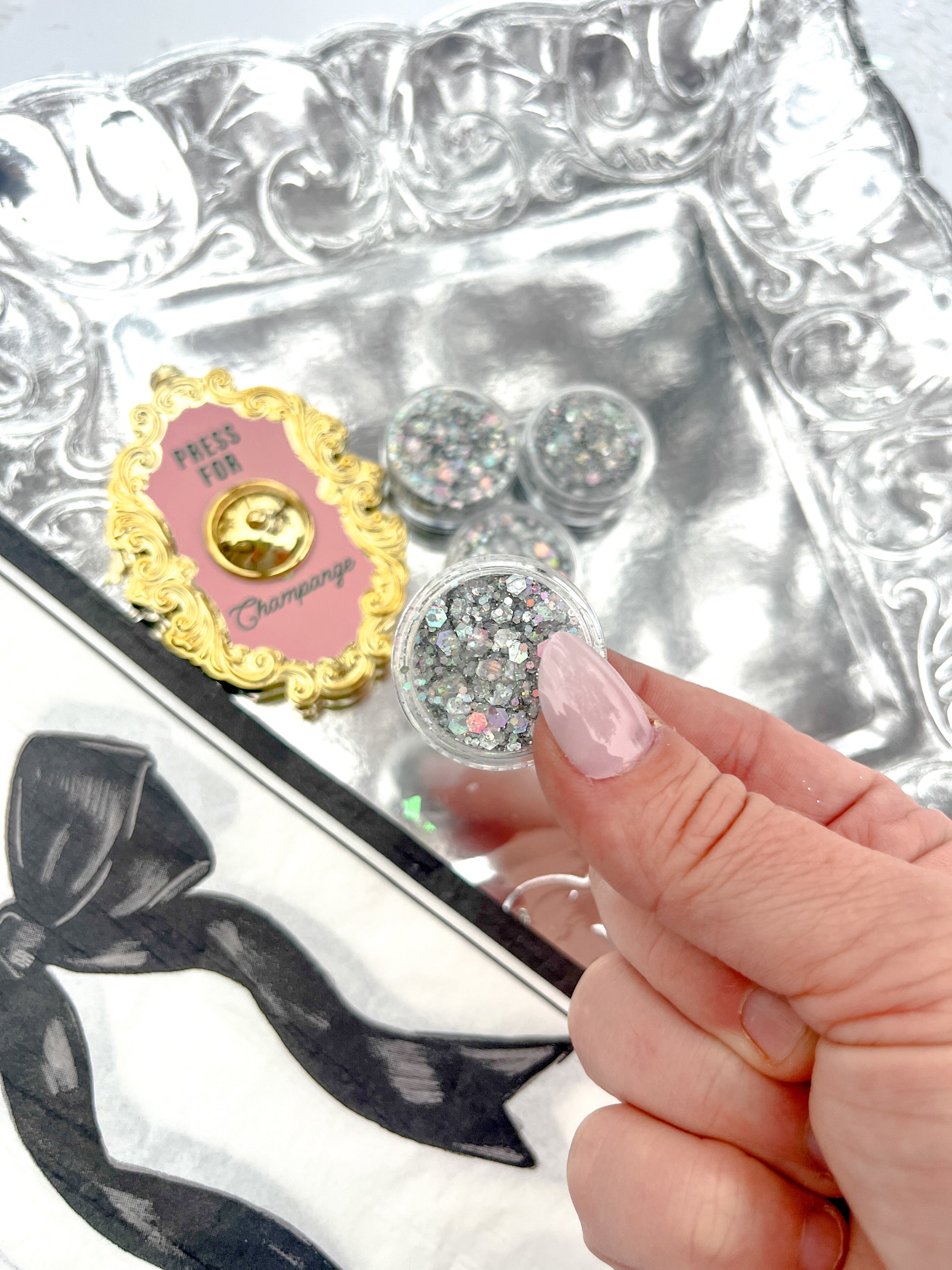 Each jar comes with a reusable spatula to help you apply the perfect amount of shimmer to your girl’s hair—or even create the cutest hair-glitter freckles for a festive New Year’s Eve look.